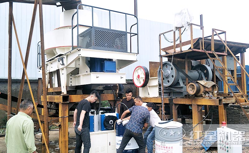 設(shè)備配置:顎破+制砂機+振動篩+輸送機